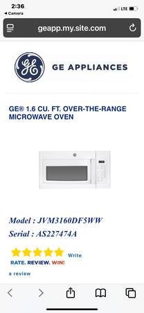 CLEAN GE 18Cu.ft frig/GE Coil Top Electric Stove and GE over the Stove 30inch Wide microwave In Excellent working condition. Guaranteed!!! Microwave comes with mounting bracket and top screws for cabinet. FREE DELIVERY WITHIN 30MILES OF FREDERICK Md. 21701 or you can pick up $550. WILL NOT HANG MICROWAVE(That’s your responsibility) WILL NOT CARRY UP 2 or 3 flights of Stairs(older gentleman) WILL DO ONE FLIGHT OR COUPLE OF STEPS WITH YOUR HELP. My helper wwill cost you $50 extra dollars on top of Full price.refrigerator Measurements is in pictures on blue tape.