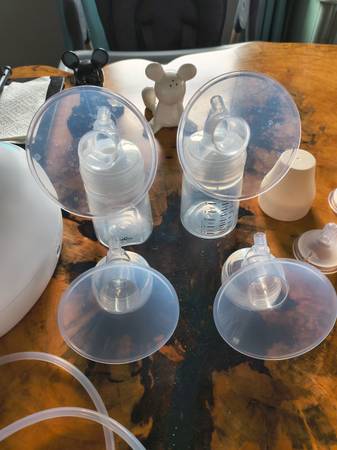 Lightly used. Ended up going with formula. Contains everything shown in the pictures. This is the portable unit that is rechargeable. Any new accessories can be purchased at target.