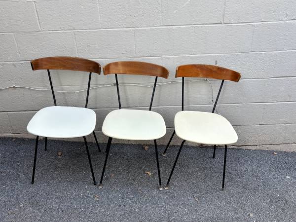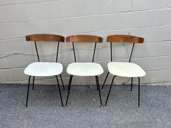 Here are 3 gorgeous mid century modern chairs. McCobb style by Pascoe. They have white seats (vinyl). The plybacks are in excellent condition. They