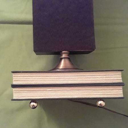 A unique one of a kind vintage farmhouse table lamp in excellent condition. From 1975. Base is made to look like 2 hard back books. Middle section creatively displays grains, beans, corn, seeds and pasta. Lamp shade is fashioned to resemble a burlap sack. Works well. From a smoke free home. Asking $12 cash.